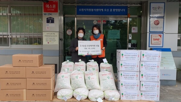 나눔생태텃밭에서 수확한 감자 1000㎏을 푸드뱅크에, 가지 500개를 ‘수원시 공유냉장고’에 기부했다.