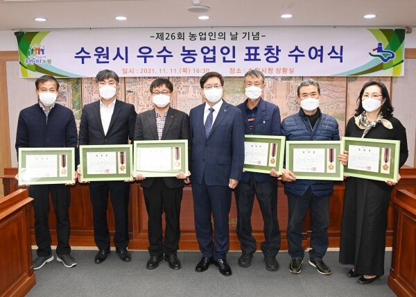 [뉴스앤톡] 수원시가 제26회 농업인의 날을 기념해 수원시 농업발전을 위해 노력한 수원 농업인 6명에게 수원시장 표창을 수여했다.