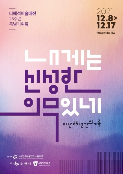 특히 나혜석 미술대전의 25년 역사를 돌아보는 특별전은 새로운 도약을 준비하는 의미로 나혜석의 시 ‘인형의 가’에서 발췌한 ‘내게는 신성한 의무 있네’를 제목으로 차용했다.