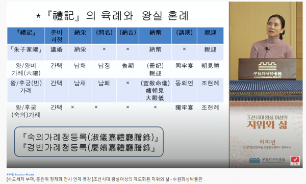 22일에는 이미선 한국학중앙연구원 전통한국연구소 연구교수가 ‘조선 시대 왕실 여성의 지위와 삶’을 주제로 강연했다.