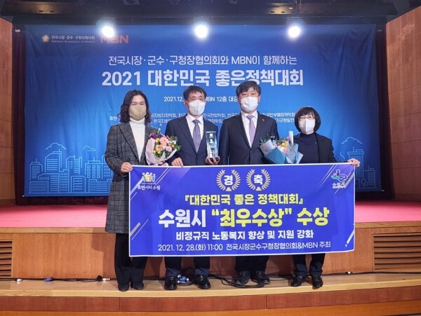 102개 기초지자체에서 정책 268건을 응모했고 수원시는 1차 외부 심사·2차 대면 발표 심사·3차 국민심사를 거쳐 최우수상으로 선정됐다.