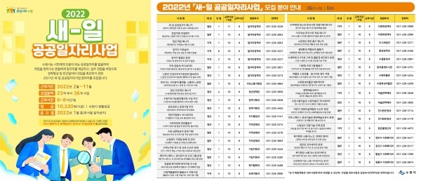 수원시는 2022년 새-일 공공일자리사업으로 36개 사업을 추진한다.