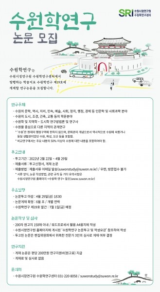 수원시정연구원, 학술지 ‘수원학연구’ 게재 논문 모집