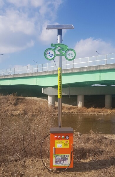 수원시는 황구지천 내 황구지교·장수천교 인근 산책로에 태양광 자전거 공기주입기를 1대씩 설치했다.