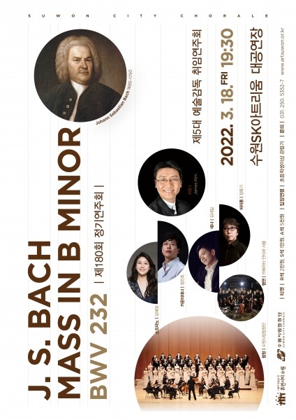 포근한 바람과 향긋한 꽃내음이 새로운 계절의 시작을 알리는 3월, 더 큰 도약을 향한 희망의 설레임이 가득 할 수원시립합창단 제5대 James Kim 예술감독 취임연주회 및 제180회 정기연주회 ‘J. S. Bach_Mass in B minor, BWV 232’의 티켓은 R석 2만원, S석 1만원, A석 5천원이며 초등학생부터 관람 가능하다.