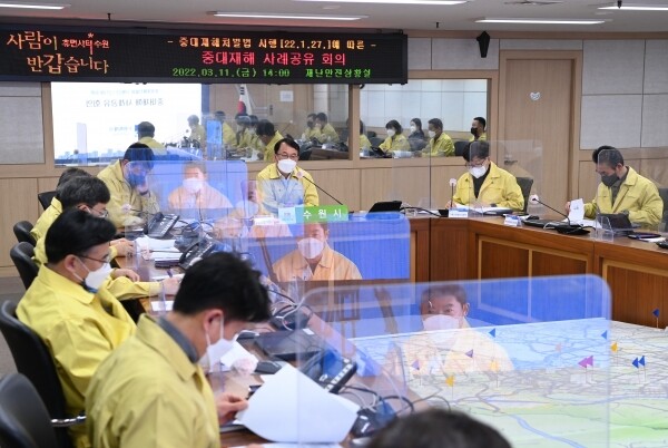 조청식 수원시장 권한대행이 주재하고 각 실·국장, 관련 부서장 등이 참석한 이날 회의에서는 과거 발생한 중대산업재해와 중대시민재해 사례를 공유하고 유사한 재해를 예방하기 위한 수원시의 대응 방안에 대해 의견을 나눴다.