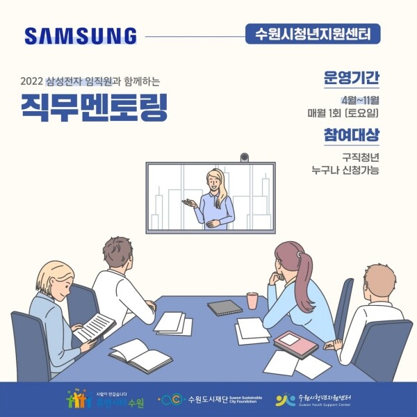 수원시 청년지원센터는 4월부터 11월까지 ‘2022 삼성전자 임직원과 함께하는 직무멘토링’을 진행한다.