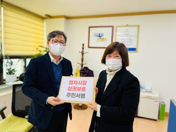 간담회에서 임은지 공동대표는 기간 받은 ‘화서역 스타필드 입점에 따른 정자시장 상권보호 주민서명’을 전달하고 “현재 정자시장 상인들과 인근 주민들은 2023년 스타필드 입점으로 발생할 피해에 대해 크게 걱정하고 있다”며 “일부 점포들은 이전 계획을 세우기까지 하고 있다”고 정자시장 상인들의 상황을 전했다.