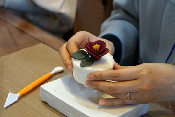 매화, 수국, 참꽃마리 중 하나를 택해 백설기 위에 꽃 절편을 만들어보는 프로그램이다.
