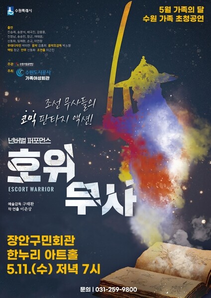 장용영과 무예24기를 소재로 한 비언어 퍼포먼스 하이라이트 공연으로 가족 누구나 편하게 즐길 수 있다.