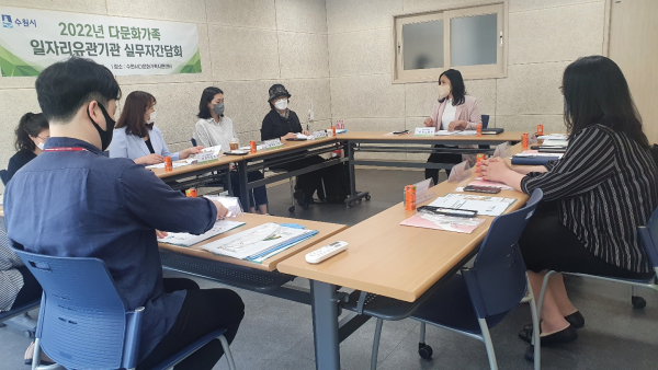 수원시는 12일 장안구 수원시다문화가족지원센터에서 ‘2022년 수원시 다문화가족 일자리 유관 기관 간담회’를 열고 다문화가족 취·창업 활성화 방안 등을 논의했다.