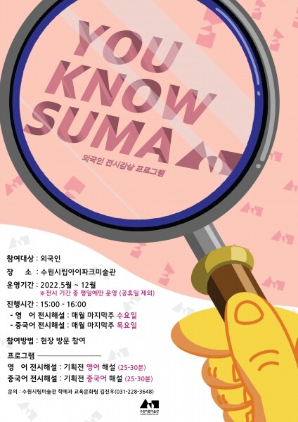 수원시립미술관 김진엽 관장은 “지속적으로 외국인 대상 전시해설 프로그램과 더불어 장애인을 위한 수어 해설 제공 등 모두를 위한 전시 감상 교육을 확장해 갈 것이다”고 밝혔다.