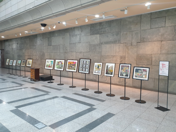 [뉴스앤톡] 수원시 선경도서관은 백미경 작가의 ‘꽃 누르미’ 작품 20점을 5월 29일까지 1층 로비에 전시한다.