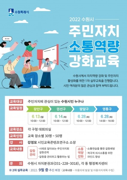 수원시, ‘주민자치 소통역량 강화교육’ 연다