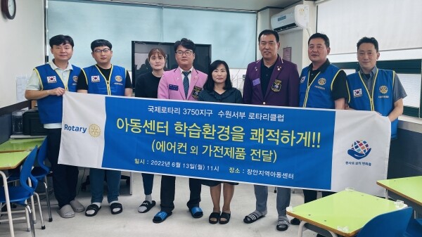 [뉴스앤톡] 13일 오전 11시, 국제로타리 3750지구의 “수원서부 로타리클럽”은 장안지역아동센터에 아이들의 학습환경을 쾌적하게 할 수 있도록 에어컨 외 가전제품을 지원했다.