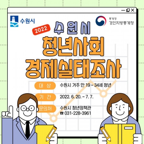 수원시, 7월 7일까지 ‘2022년 수원시 청년사회경제실태조사’