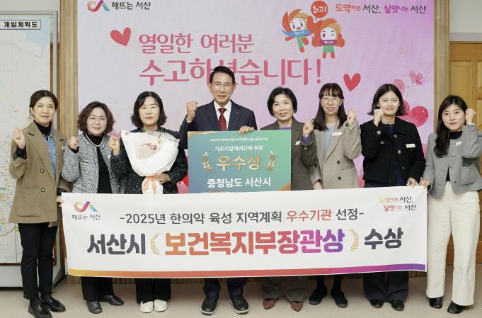 [뉴스앤톡] 충남 서산시는 보건복지부가 실시한 ‘2025년 한의약 육성 지역계획 수립 성과보고회’에서 우수기관으로 선정돼 보건복지부 장관상을 받았다고 밝혔다.