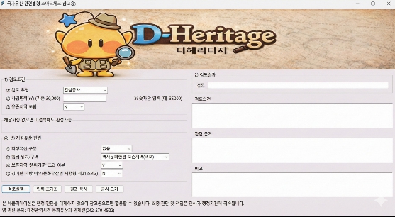 이 애플리케이션은 사업 단계, 사업 면적, 주변 문화유산 현황 등 핵심 정보를 입력하면 ‘국가유산영향진단법’ 등 관계 법령 기준에 따라 해당 사업에 필요한 행정절차를 자동으로 판정하고 단계별 이행 사항을 안내하는 기능을 갖추고 있다