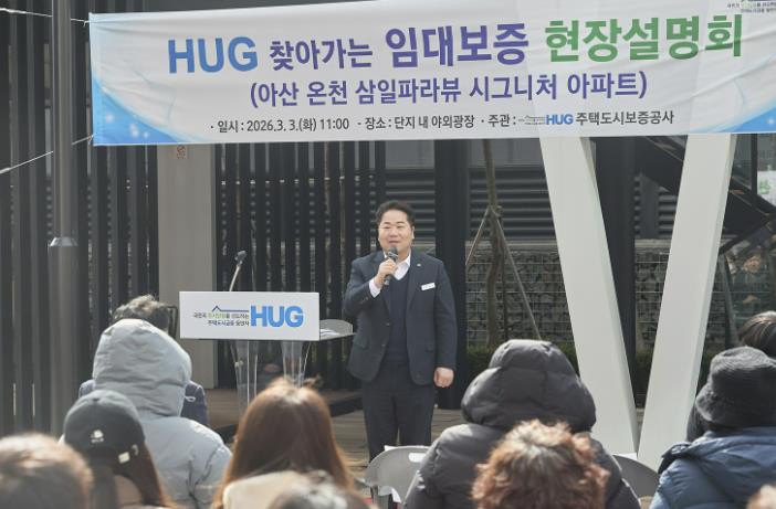 [뉴스앤톡] 아산시는 3일 온천동 삼일파라뷰 시그니처 단지 내 광장에서 주택도시보증공사(HUG)와 함께 임대보증금 보증이행 관련 현장설명회를 열고 임차인 보호 대책과 향후 절차를 안내했다.