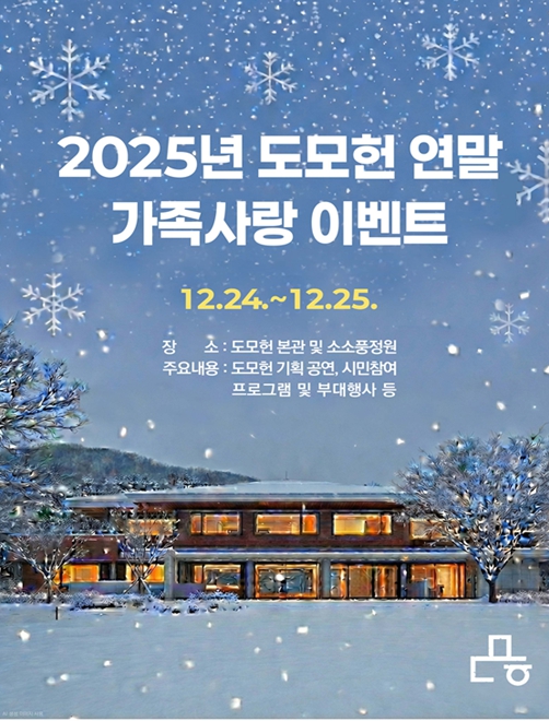 시민참여 프로그램은 현장 접수로 참여할 수 있으며, ▲가족뮤지컬 공연 ▲크리스마스 콘서트는 도모헌 공식 누리집을 통해 온라인 사전 예약으로 신청하면 된다.