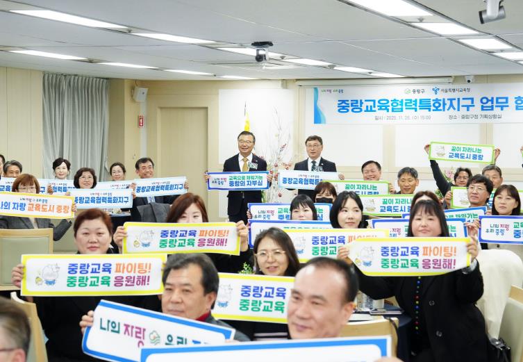 [뉴스앤톡] 중랑구는 11월 26일 구청 4층 기획상황실에서 서울특별시교육청과 ‘중랑교육협력특화지구’업무협약을 체결했다. 이번 협약은 2019년 혁신교육지구, 2023년 미래교육지구 추진에 이어 지역 교육 협력사업을 확장하는 단계로, 구·교육청·학교 간 협력 구조를 체계화해 지역 기반 교육 환경을 강화하기 위해 마련됐다.