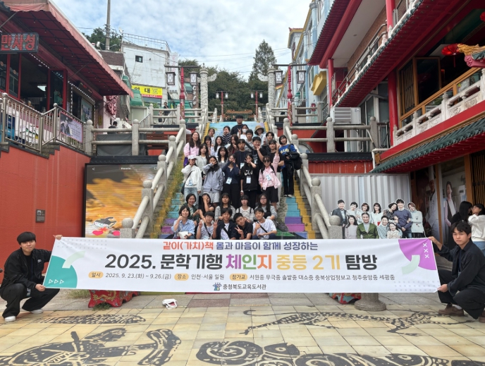 [뉴스앤톡] 충청북도교육청 직속기관 교육도서관은 23일부터 26일까지 인천과 서울 일대에서 2025. 같이(가치)책 문학기행 체인지(體人智) 중등 2기 탐방을 실시 중이다.