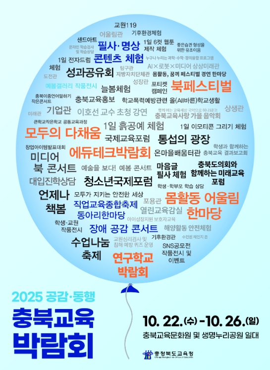[뉴스앤톡] 충청북도교육청은 오는 22일부터 26일까지 5일간 '17만의 숨결, 꿈결 바람결'이라는 슬로건 아래 충북교육의 현재를 공유하고 미래 교육의 방향을 체험하는 통합형 교육박람회인 2025 공감‧동행 충북교육박람회를 개최한다고 밝혔다.