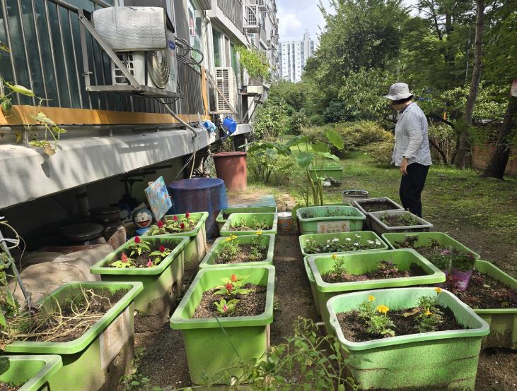 | ▲ 창1동 뽀뽀뽀 어린이집 관계자가 상자텃밭을 가꾸고 있다. |