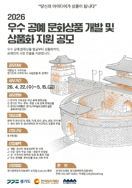 이번 사업은 4월 22일 공모를 시작으로 10월까지 상품 개발을 진행하며, 이후 경기공예페스타 등 재단 주요 행사와 연계해 성과를 공개하고 유통을 확대할 예정이다.