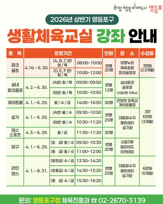 | ▲ 영등포구 생활체육교실 모집 안내문 |