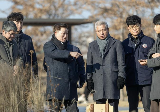 박승원 광명시장은 지난 5일 지난해 12월 조성을 완료한 안양천 지방정원 시범사업구간을 찾아 정원 조성 결과와 이용 현황을 살펴보고, 향후 본 공사 구간의 조성·운영 방향을 논의했다.