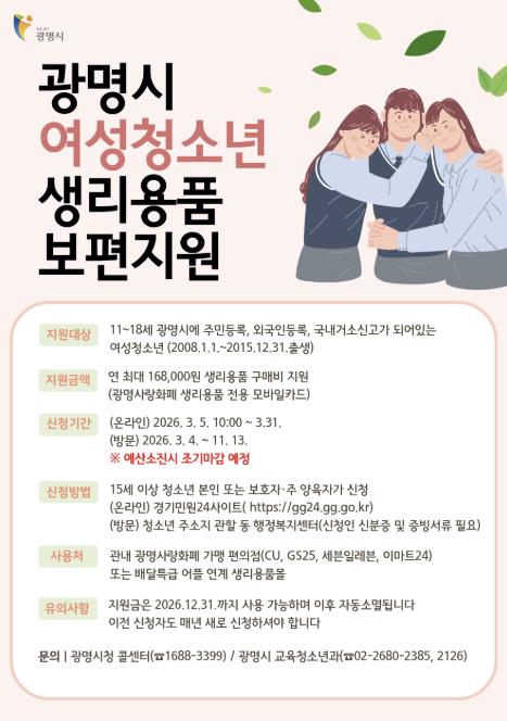 | ▲ 광명시 여성청소년 생리용품 보편지원 안내문 |