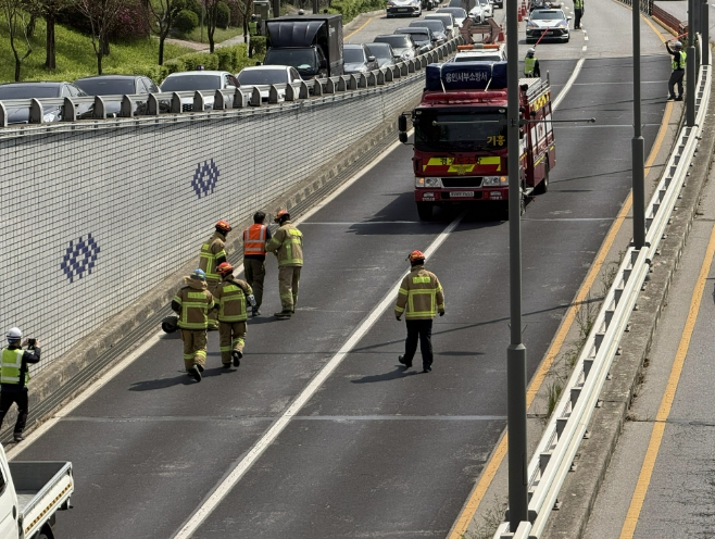 | ▲ 15일 서천지하차도에서 기흥구·용인서부소방서·용인동부경찰서 합동훈련이 진행됐다. |