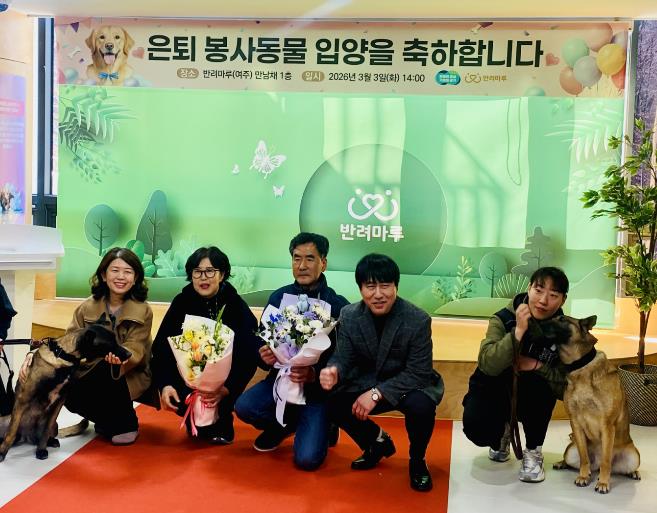 이강영 경기도 축산동물복지국장은 “은퇴군견 입양이 빨리 이루어짐은 국가봉사동물에 대한 사회적 관심과 동물복지 인식이 한 층 높아졌음을 보여준다”며 “경기도는 지속적으로 공공적 역할과 반려동물 복지정책 실현에 앞장서겠다”고 말했다.