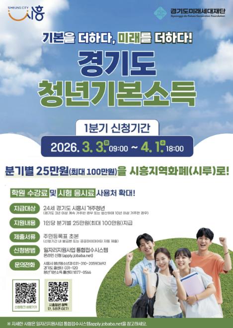 [뉴스앤톡] 시흥시는 청년의 사회적 기본권 보장과 지역경제 활성화를 위해 4월 1일까지 ‘2026년 1분기 청년기본소득’ 지급 신청을 받는다.