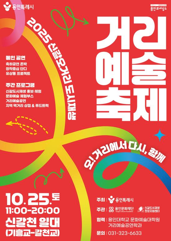 [뉴스앤톡] 용인특례시는 25일 신갈오거리에 있는 신갈천 일대에서 ‘2025 신갈오거리 도시재생 거리예술축제’를 개최한다고 14일 밝혔다.