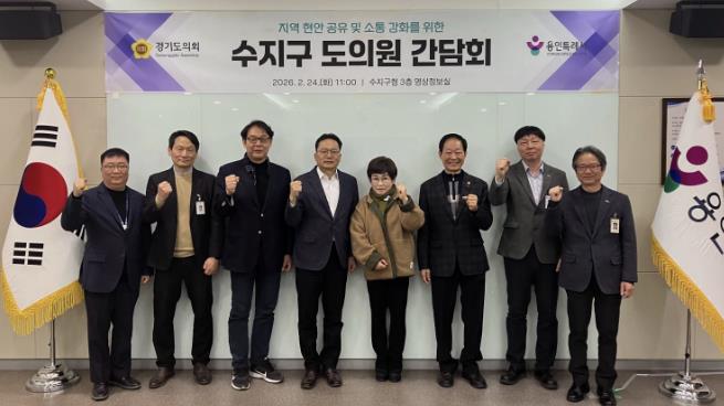 이날 간담회에는 수지구 지역 도의원과 구 관계자 등 10여 명이 참석해 2025년 특별조정교부금으로 추진 중인 주요 사업의 진행 상황을 점검하고, 지역 발전을 위한 협력 방안을 논의했다.
