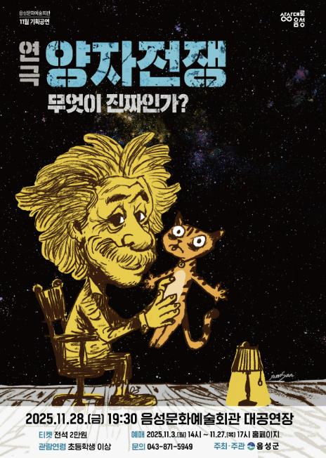 [뉴스앤톡] 음성군은 오는 11월 28일 음성문화예술회관 기획공연으로 연극 '양자전쟁'을 선보인다고 밝혔다.