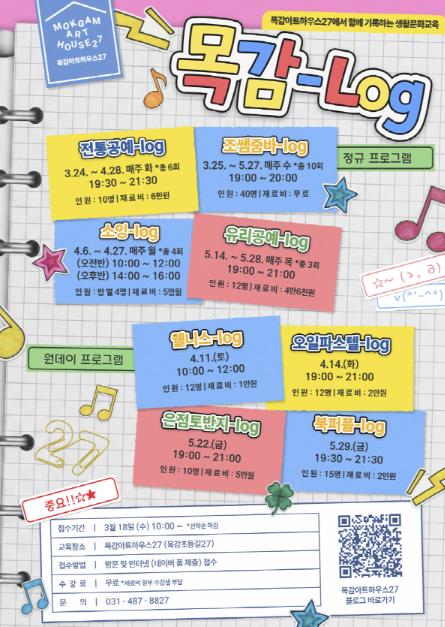 | ▲ 시흥시 목감아트하우스27, 상반기 생활문화교육 '목감-로그(log)' 참여자 모집 |