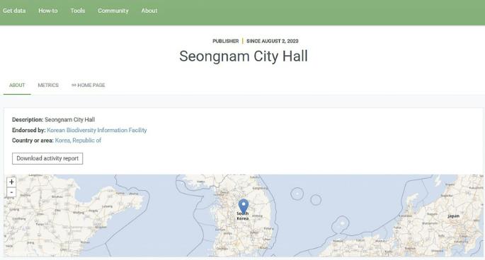 | ▲ 세계생물다양성정보기구(GBIF·지비아이에프) 플랫폼 성남시 화면 |