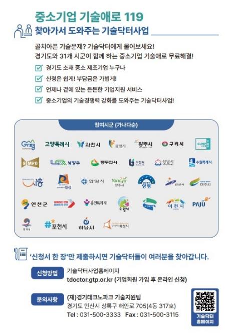 ‘기술닥터 사업’은 제품 개발이나 공정 개선 과정에서 기술적 한계에 직면한 중소 제조기업에 분야별 전문가(기술닥터)가 1:1로 매칭돼 현장을 직접 방문해 문제 해결부터 시제품 제작, 공정 개선, 사업화까지 전 과정을 단계별로 밀착 지원하는 사업이다.