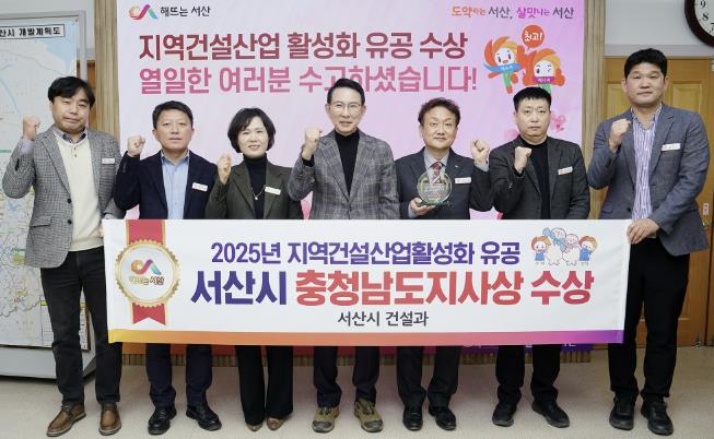 [뉴스앤톡] 충남 서산시가 지난 2025년 지역건설산업 활성화에 기여한 공로를 인정받아 충남도로부터 지역건설산업 활성화 우수기관에 선정됐다고 밝혔다.