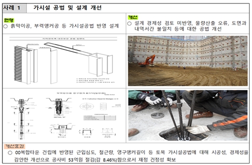 아울러 단순한 단가 조정에 그치지 않고 ▲가시설 공법 및 설계 개선 ▲배관 물량 산출 방식 개선 ▲친환경 탄소중립 실현 ▲감리 용역비 산정 방식 최적화 등 현장 특성에 맞는 최적의 공법 도입과 설계 개선을 통해 예산 절감과 시공 품질 향상을 동시에 도모했다.