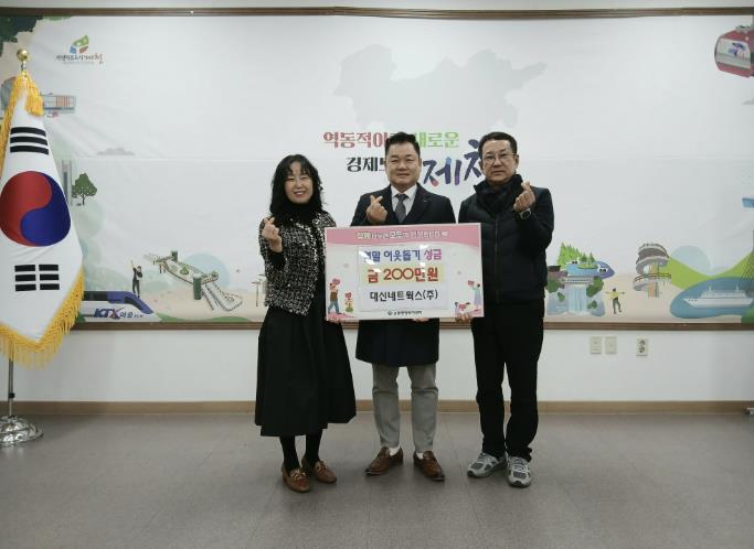 먼저 지역 내 나눔 실천에 앞장서 온 CK마트(대표 김병곤)와 (주)건토배(대표 윤종근)에서 각각 100만 원과 300만 원을 맡겨왔고, 대신네트웍스(주)(대표 전덕흥)에서 200만 원, ㈜서호전력(대표 신규인)에서 100만 원을 기탁하며 ‘기부 릴레이’에 열기를 더했다.