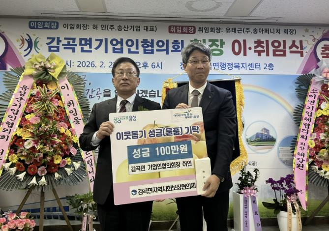 [뉴스앤톡] 감곡면기업인협의회 허인 전 회장은 지난 23일, 감곡면행정복지센터에서 열린 이취임식에서 전별금 100만원을 감곡면지역사회보장협의체에 기탁했다.