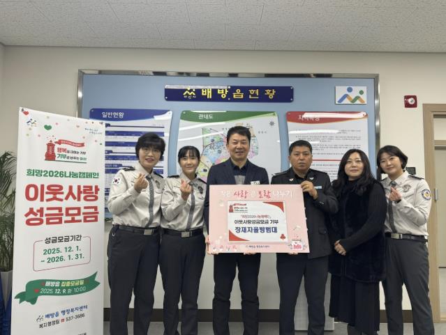 [뉴스앤톡] 배방읍 장재자율방범대는 지난 15일 배방읍 행정복지센터에서 지역 내 어려운 이웃을 돕기 위한 ‘희망2026 나눔캠페인’에 동참해 성금 100만 원을 전달했다.
