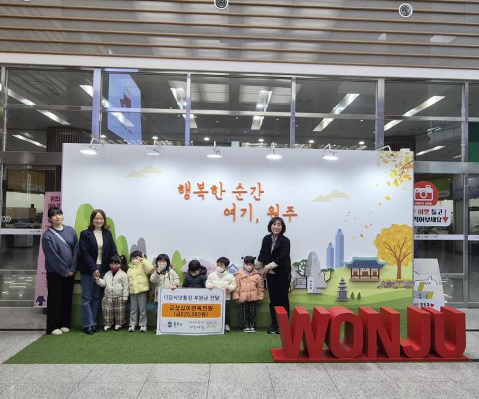 [뉴스앤톡] 원주 아이조아어린어집은 지난 11일 원아들과 함께 자립 아동 지원을 위한 디딤씨앗통장 후원금 32만 6,000원을 원주시에 전달했다.