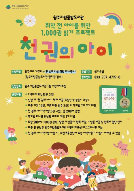 [뉴스앤톡] 원주시립중앙도서관은 올해부터 ‘천 권의 아이’ 프로그램을 새롭게 개편해 운영한다.