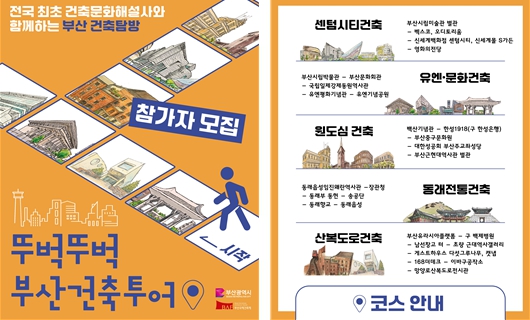 배성택 시 주택건축국장은 “부산에는 도시의 역사와 정체성을 담은 다양한 건축자산이 곳곳에 자리하고 있다”라며, “이번 '뚜벅뚜벅 부산건축투어'를 통해 시민들이 건축에 담긴 이야기를 걸으며 경험하고 부산 건축문화의 매력을 발견하는 계기가 되길 기대한다”라고 전했다.
