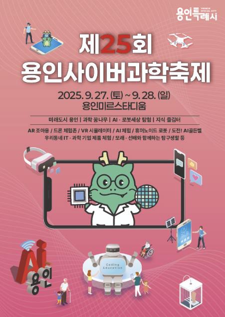 [뉴스앤톡] 용인특례시는 27일부터 28일까지 용인미르스타디움‘에서 열리는 ’제30회 용인시민의 날‘ 행사에서 ’2025 용인사이버과학축제‘를 개최한다고 19일 밝혔다.